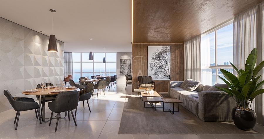 Imóvel com 181m² privativos, 04 suítes sendo a suíte principal com closet e persianas integradas automatizadas living com 02 sacadas sendo 01 integrada e outra aberta, cozinha, churrasqueira à carvão, alto padrão em acabamento, 03 vagas de garagem.