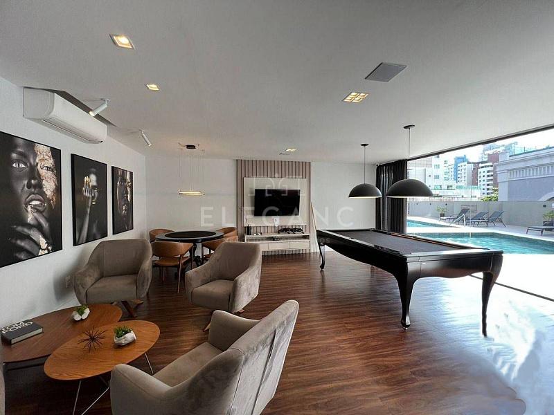 Apartamento mobiliado, com 113m² privativos, 02 dormitórios sendo 01 suíte, sala para 02 ambientes, sacada com churrasqueira a carvão, aquecimento a gás, área de serviço e 01 vaga de garagem.