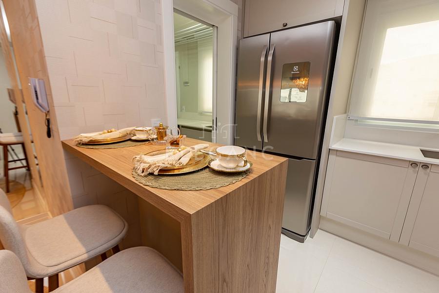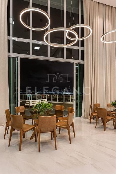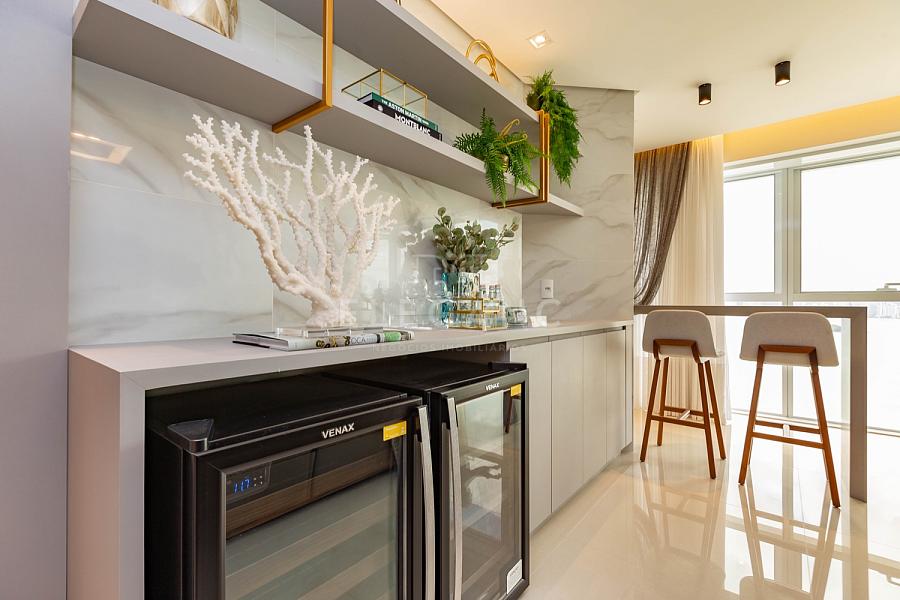 O design da planta em forma de asa delta, juntamente com a inovadora Janela Infinity, trazem uma conexão perfeita com a beleza natural da vista definitiva para o mar. O espaçoso living para 2 ambientes se une harmoniosamente à cozinha e à sacada, enquanto o Espaço Gourmet com churrasqueira a carvão é o local ideal para entreter amigos e familiares.