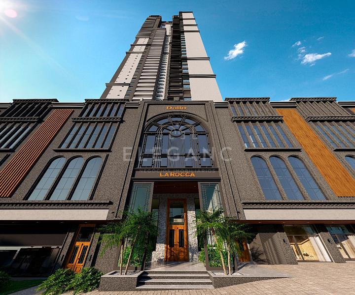 Apartamento no Edifício La Rocca no centro de Itapema, em construção,  com 164m² Privativos , 4 suítes sendo 1 master com closet e hidromassagem, amplo living com sala de estar e jantar, ampla sacada com espaço gourmet e churrasqueira à carvão, cozinha americana, área de serviço, 3 vagas.