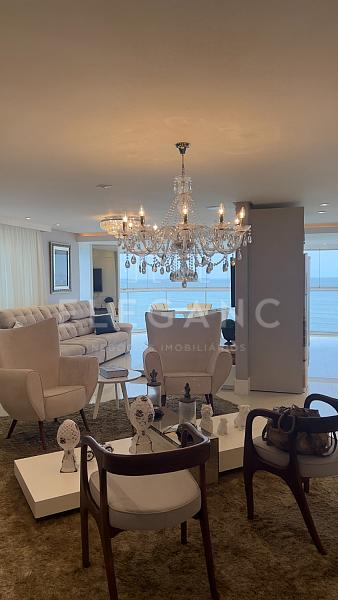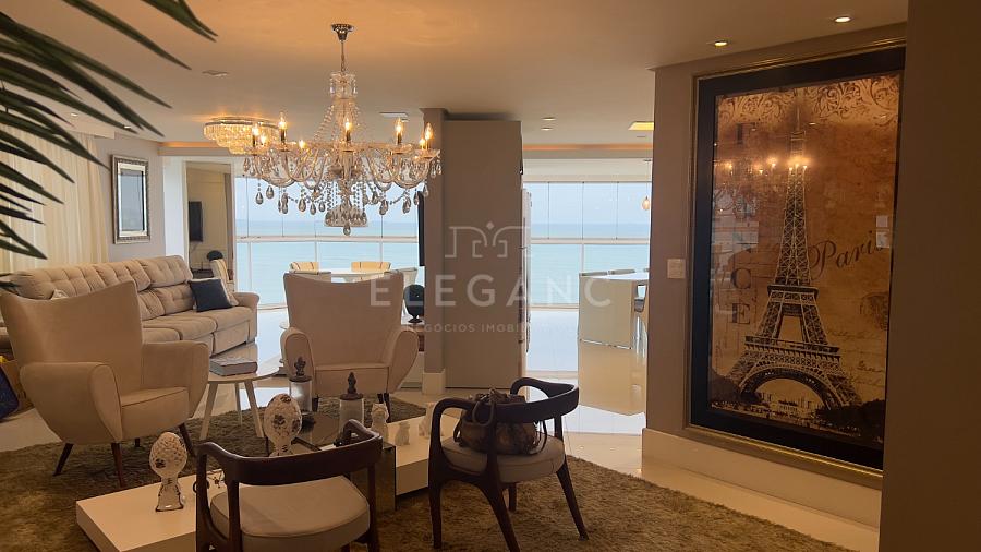 Apartamento frente mar andar alto e uma ótima vista finamente mobiliado e decorado pronto para morar, 273 m² privativos 4 dormitórios sendo 3 suítes e 1 suíte master, 5 banheiros, 2 vagas de garagem, dependência de empregada.