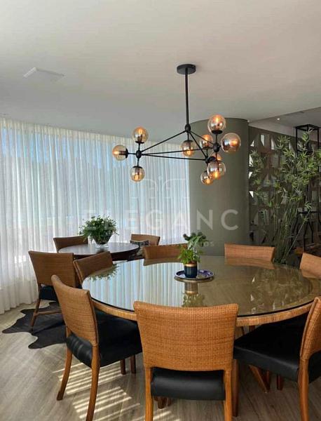 3 suites, sala estar, sala de jantar, sala com lareira, escritório, cozinha gourmet, lavabo,  dep. de empregada, 3 vagas de garagens individuais e 1 Box individual no G3.