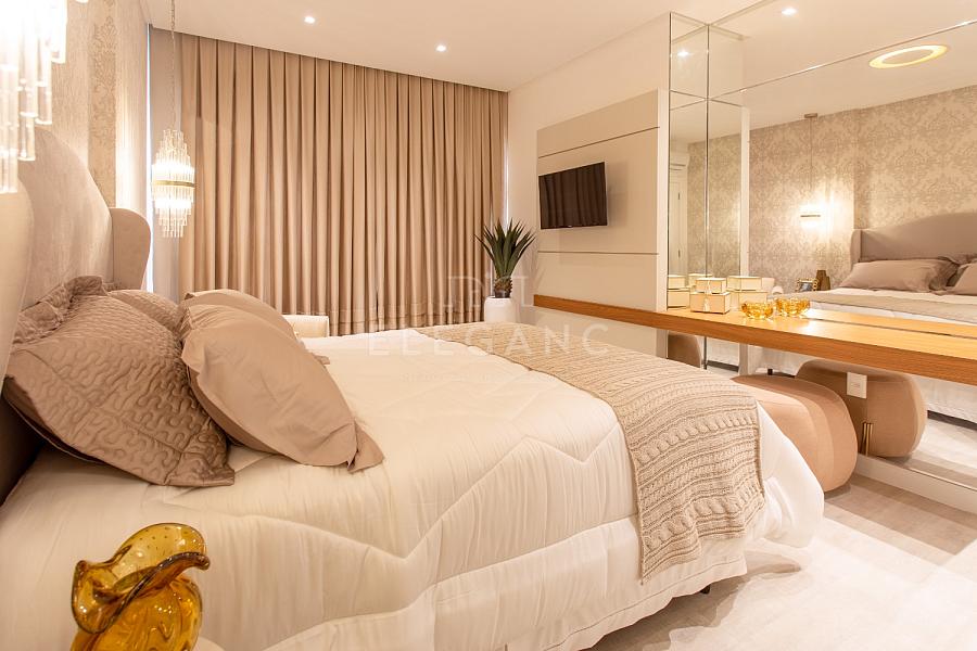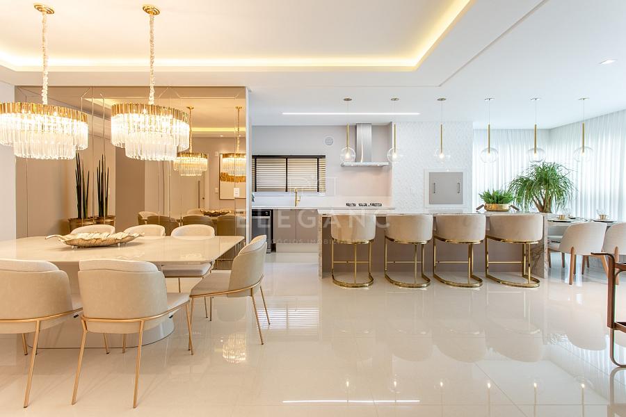FINAMENTE MOBILIADO E DECORADO - Apartamento com vista mar no Edifício Villa de Siena em Itapema com 187m² privativos, 04 suítes, amplo e integrado living com sala de estar e sala de jantar, cozinha, lavabo, área de serviço, espaço gourmet integrado com churrasqueira e 03 vagas de garagem.