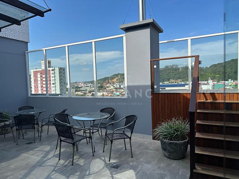 Apartamento no bairro Santa Terezinha em Brusque com 70m² privativos, 02 dormitórios, amplo living integrado, sala de estar, cozinha, área de serviço, área de lazer com piscina, churrasqueira e 02 vagas de garagem.
