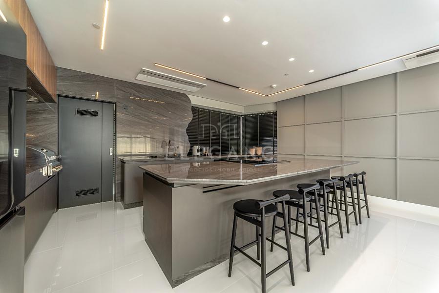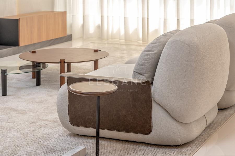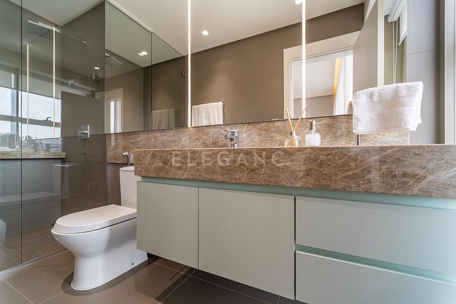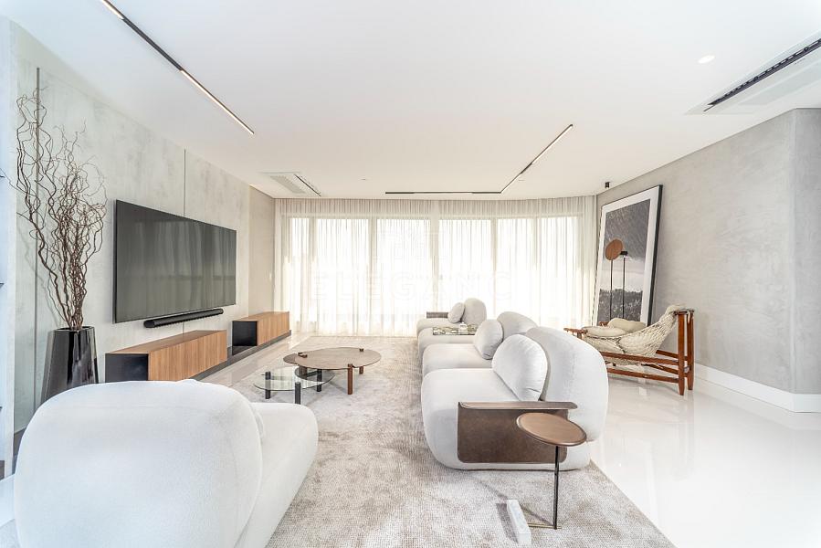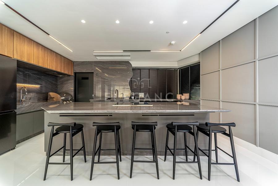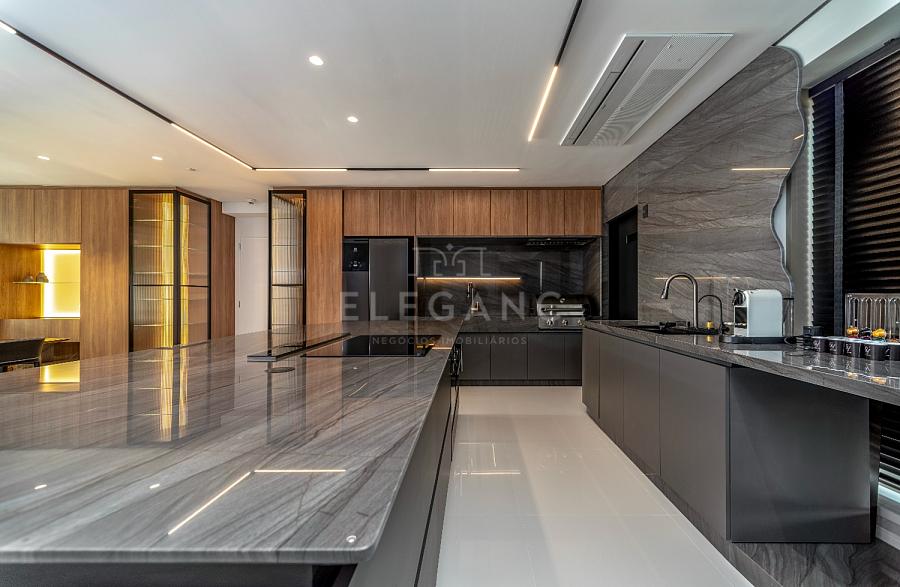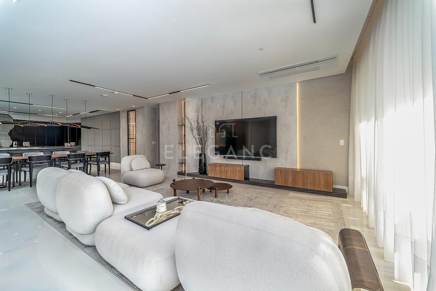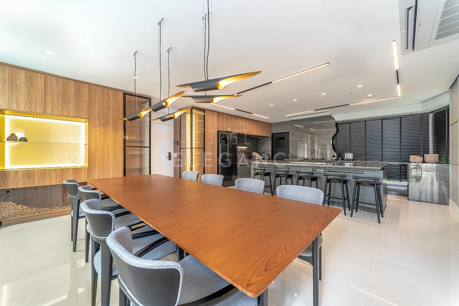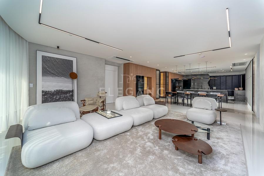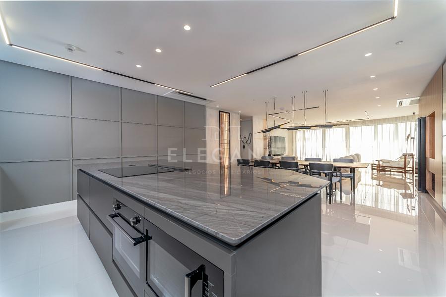 Apartamento no Edifício Yachthouse By Pininfarina em andar alto com vista para o mar, finamente mobiliado, com 265m², amplo living com sala de estar, sala de jantar, cozinha americana, 4 suítes, área de serviço, lavabo e 3 vagas de garagem.
