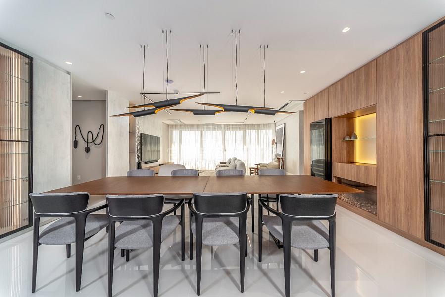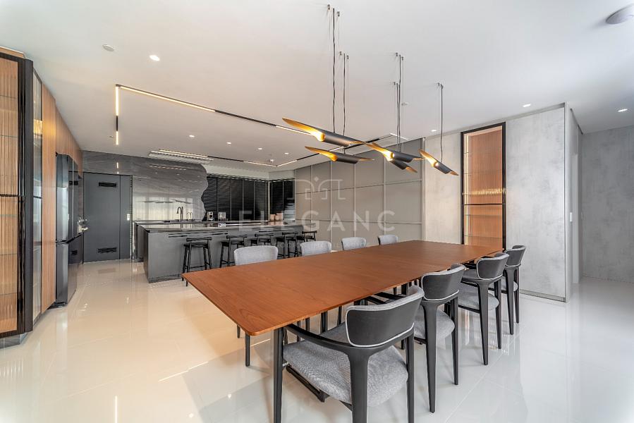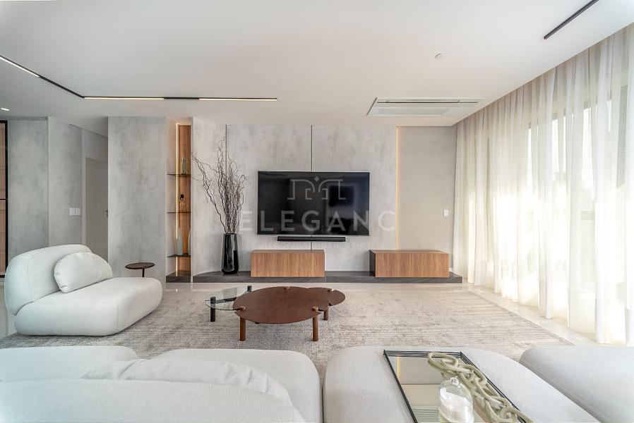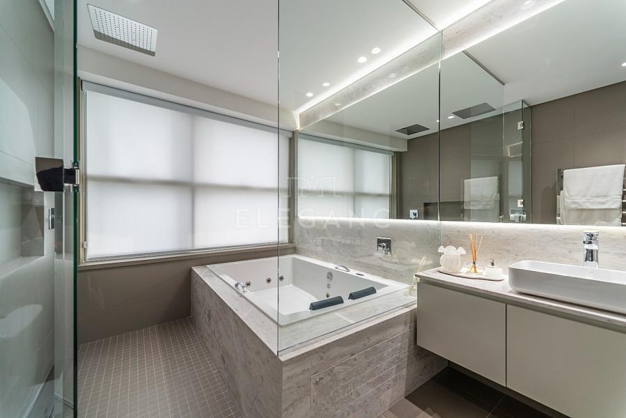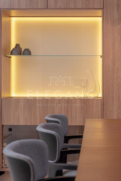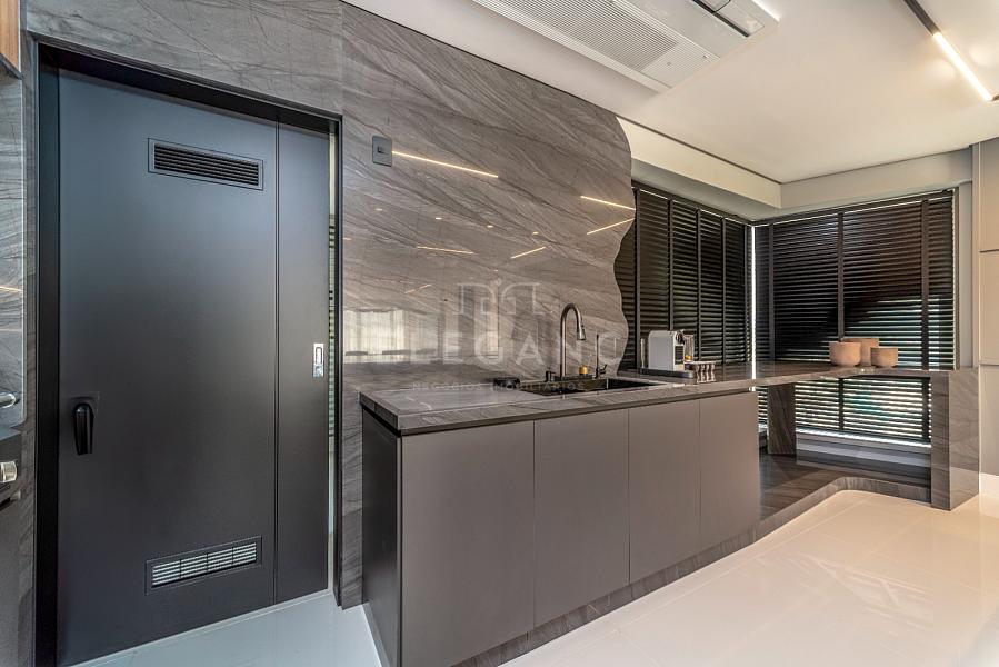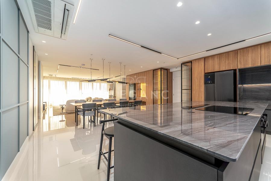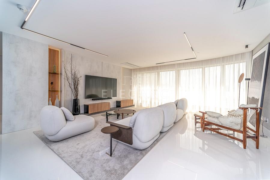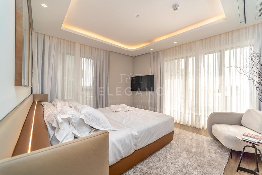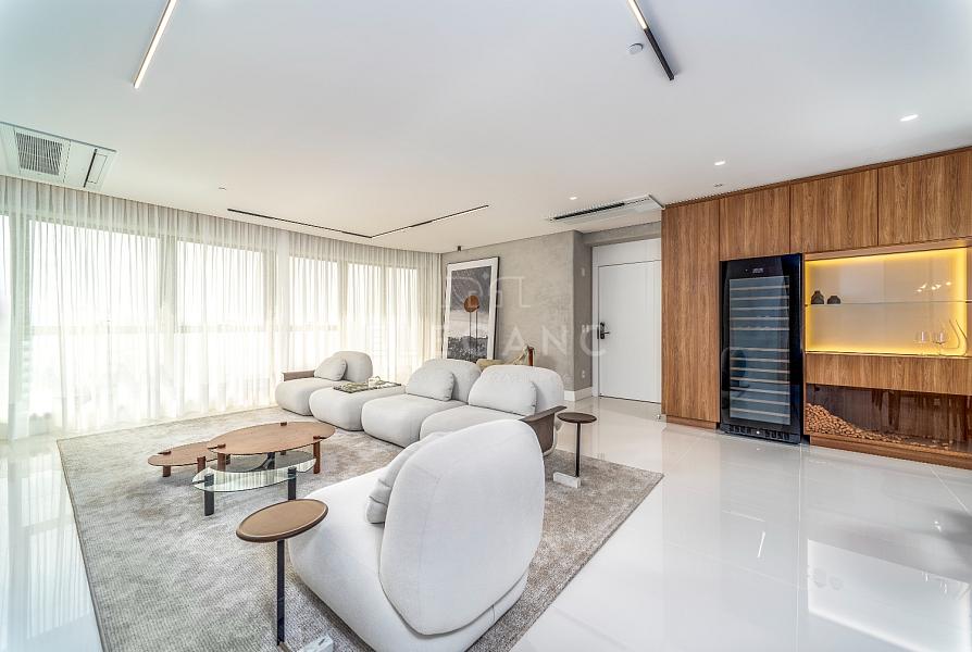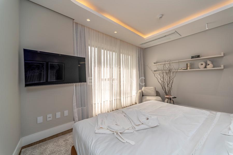 Apartamento no Edifício Yachthouse By Pininfarina em andar alto com vista para o mar, finamente mobiliado, com 265m², amplo living com sala de estar, sala de jantar, cozinha americana, 4 suítes, área de serviço, lavabo e 3 vagas de garagem.
