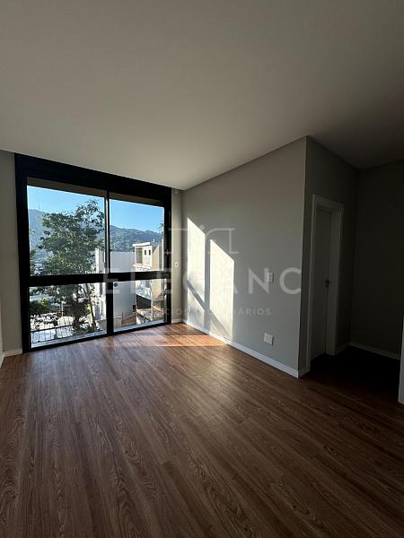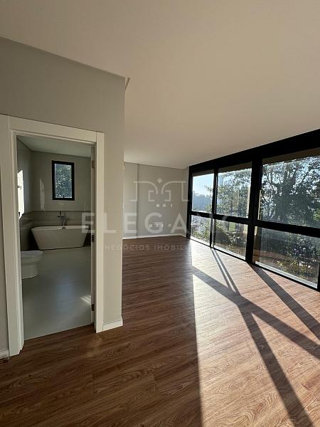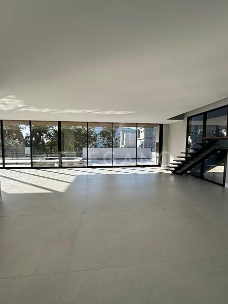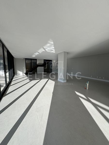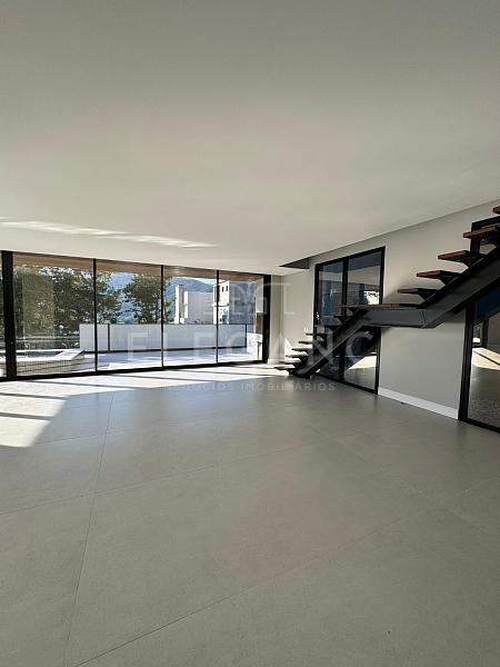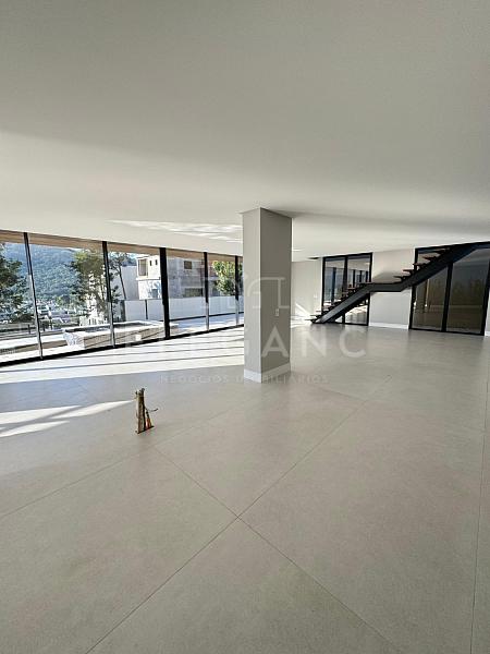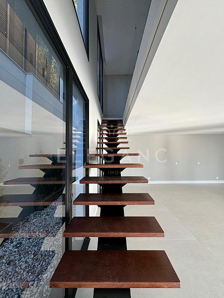 No piso superior, encontre 04 suítes, incluindo uma máster com closet, banheira e uma vista deslumbrante da Mata Atlântica e da orla da Barra Sul.