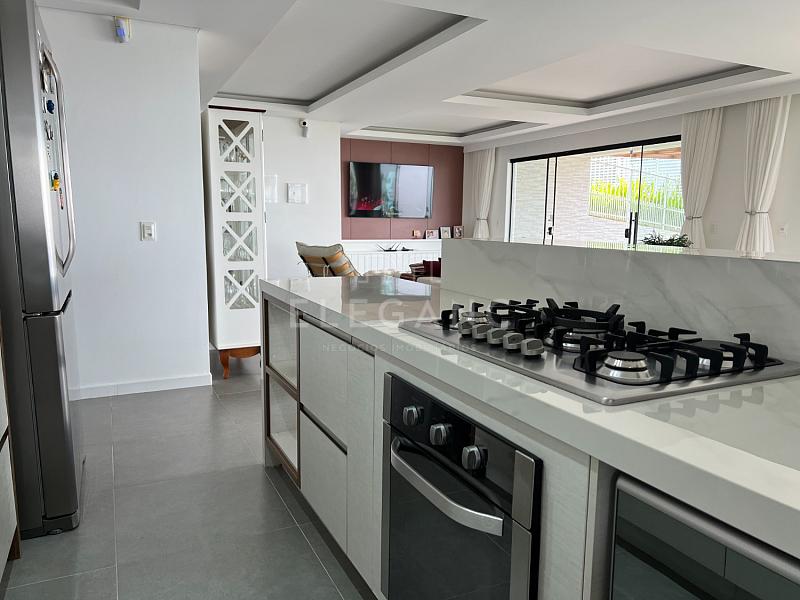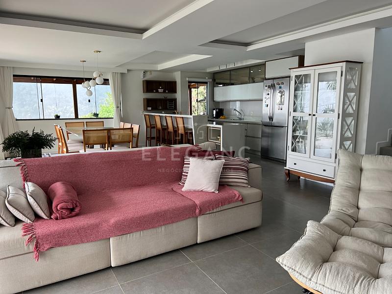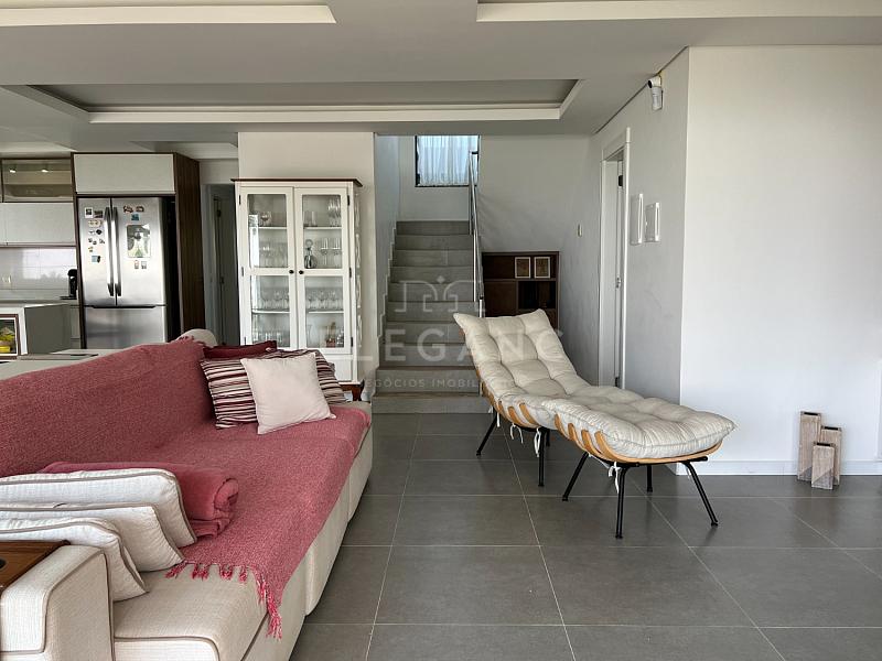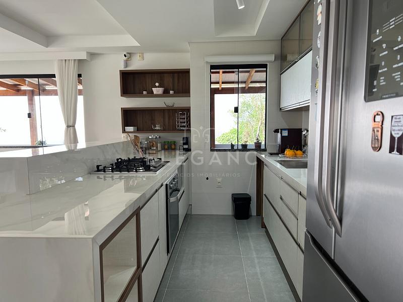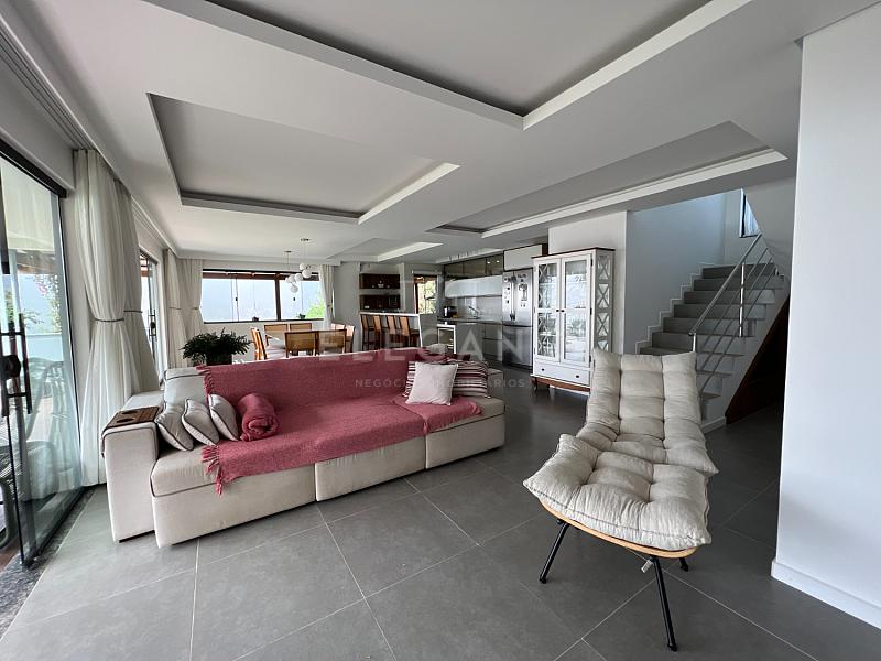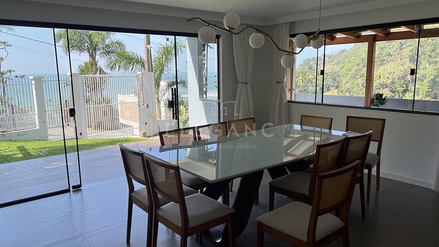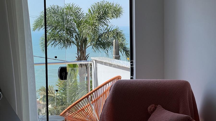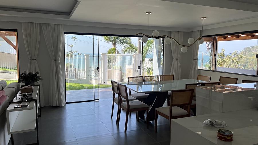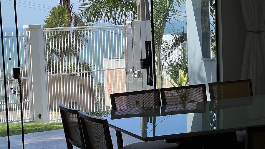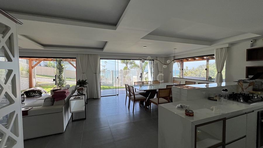 A casa conta com amplo living e cozinha integrada ambas com vista para o mar, living espaçoso com pé direito alto incluindo sala de estar e sala de TV, espaço gourmet com cozinha integrada, lavabo e exclusivas 03 vagas de garagem.