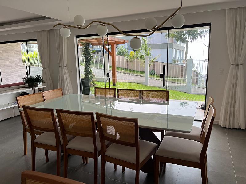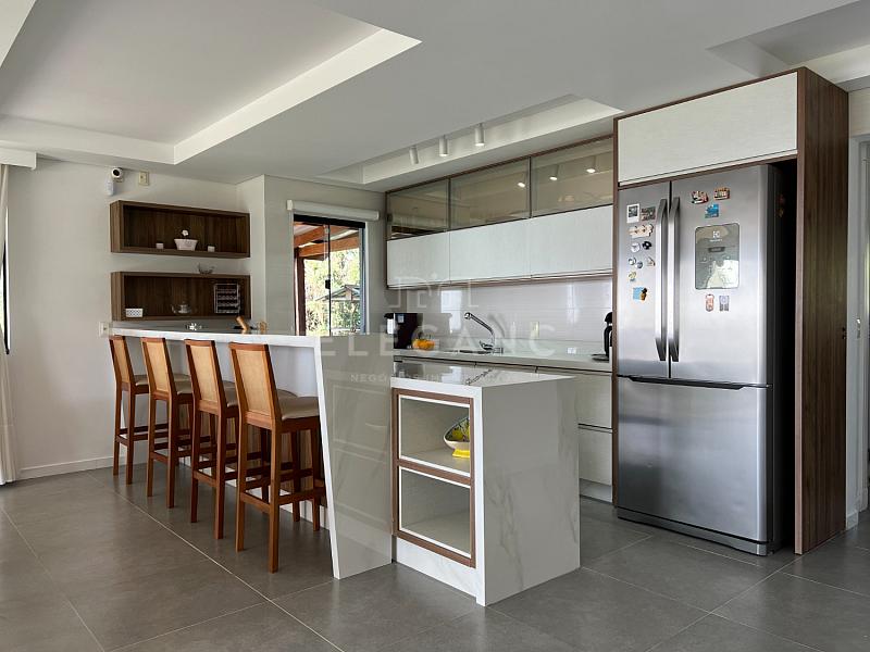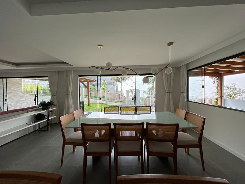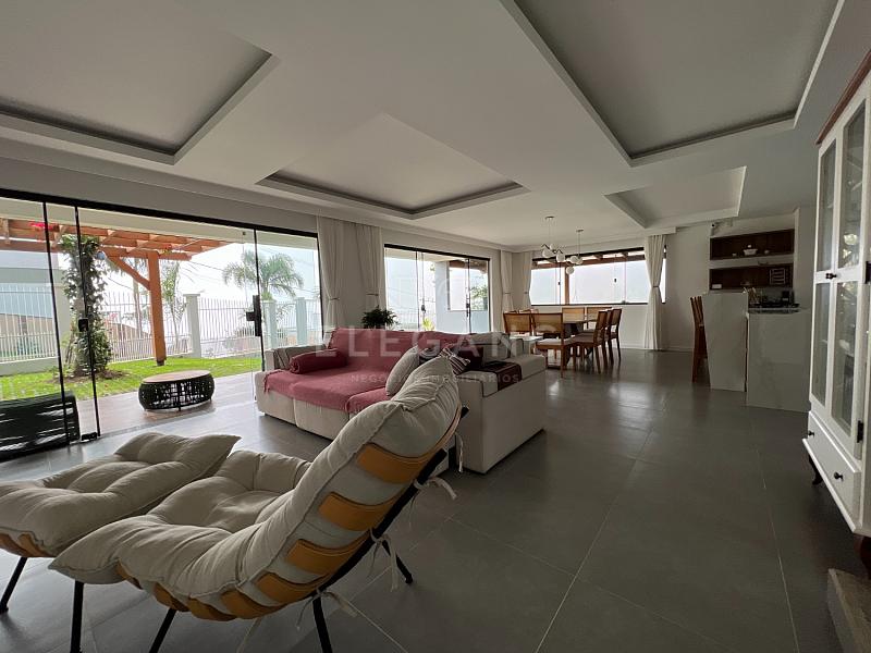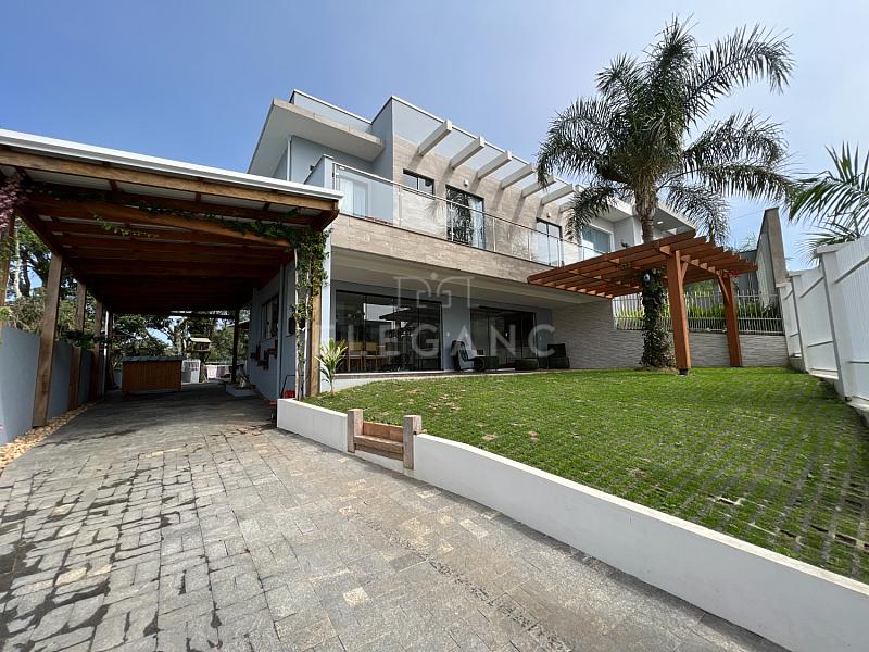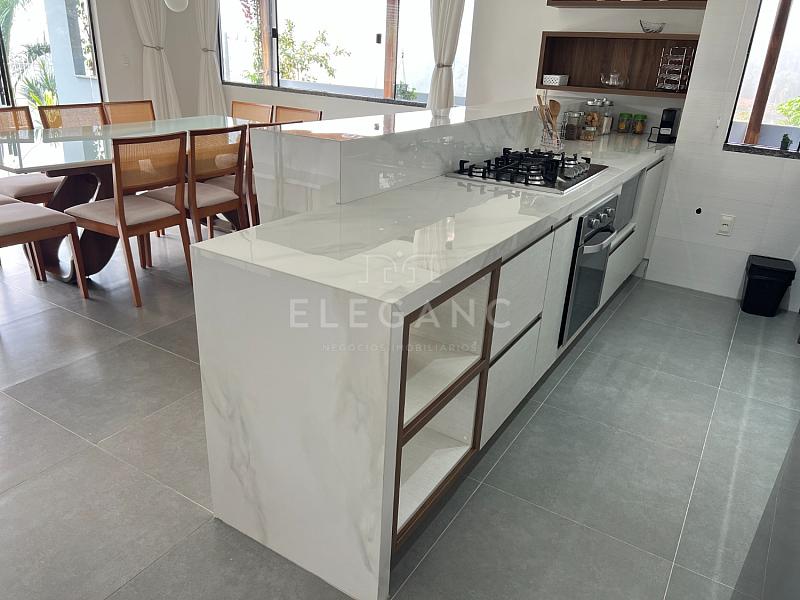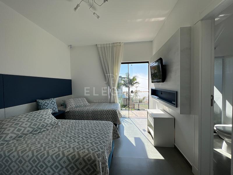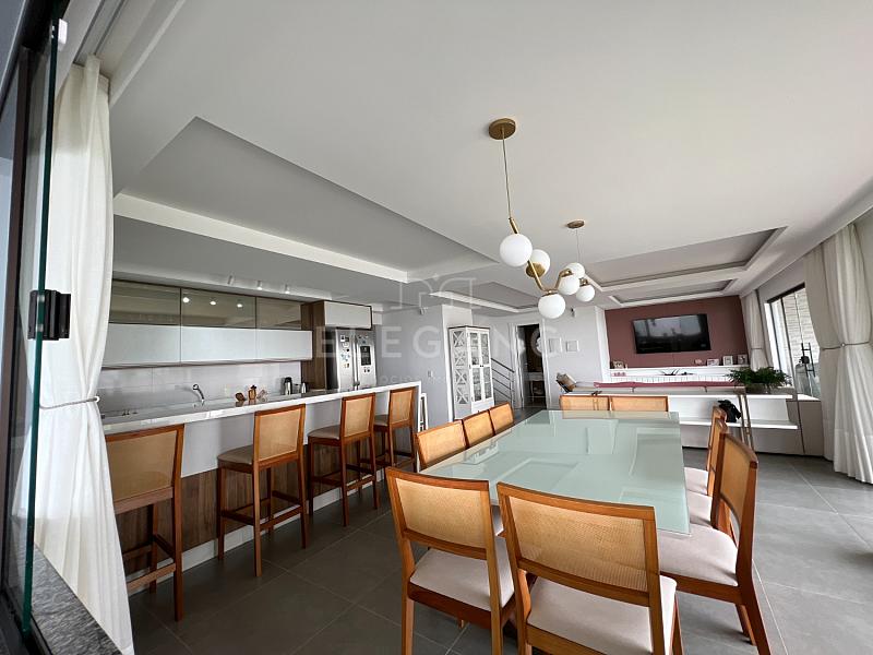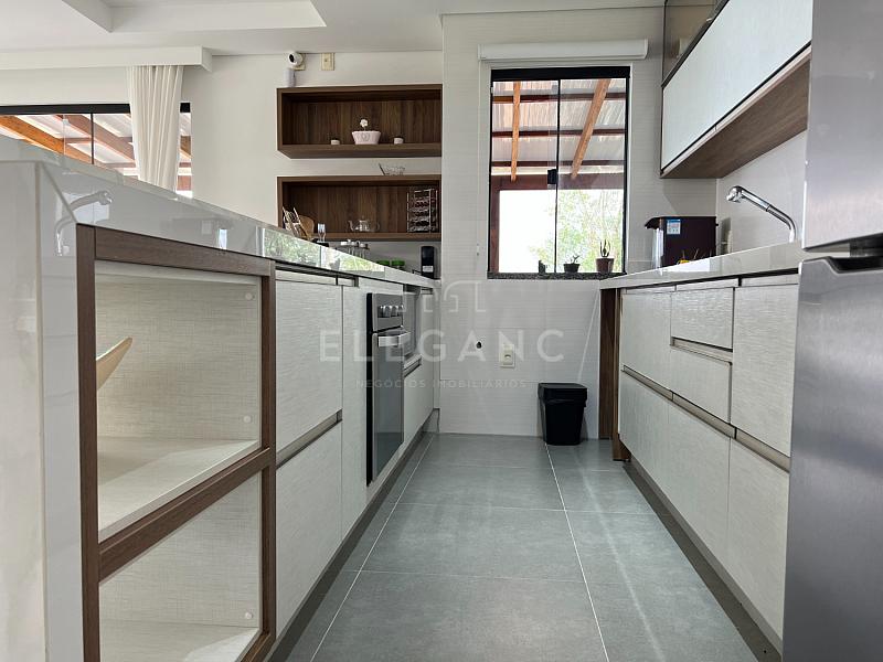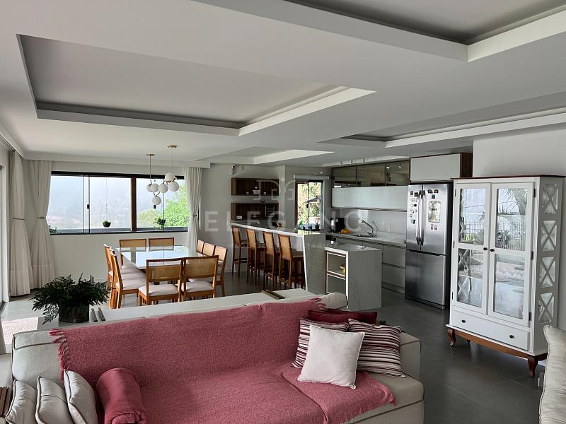 A casa conta com amplo living e cozinha integrada ambas com vista para o mar, living espaçoso com pé direito alto incluindo sala de estar e sala de TV, espaço gourmet com cozinha integrada, lavabo e exclusivas 03 vagas de garagem.