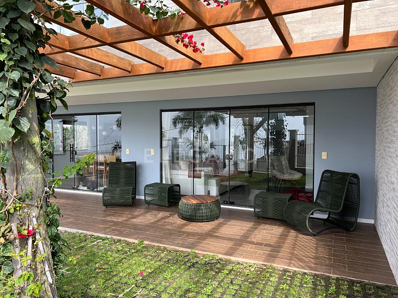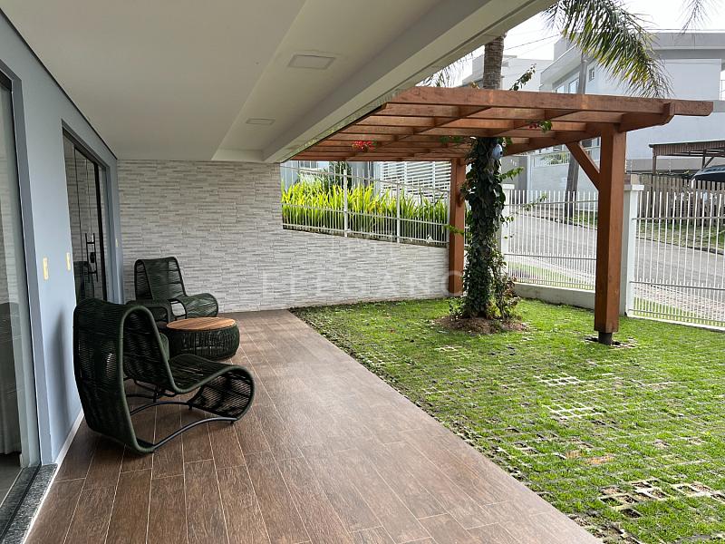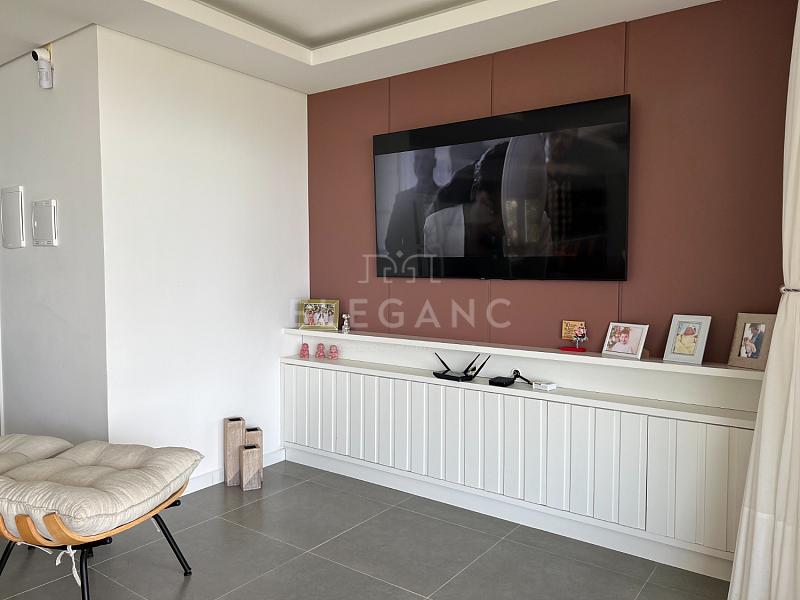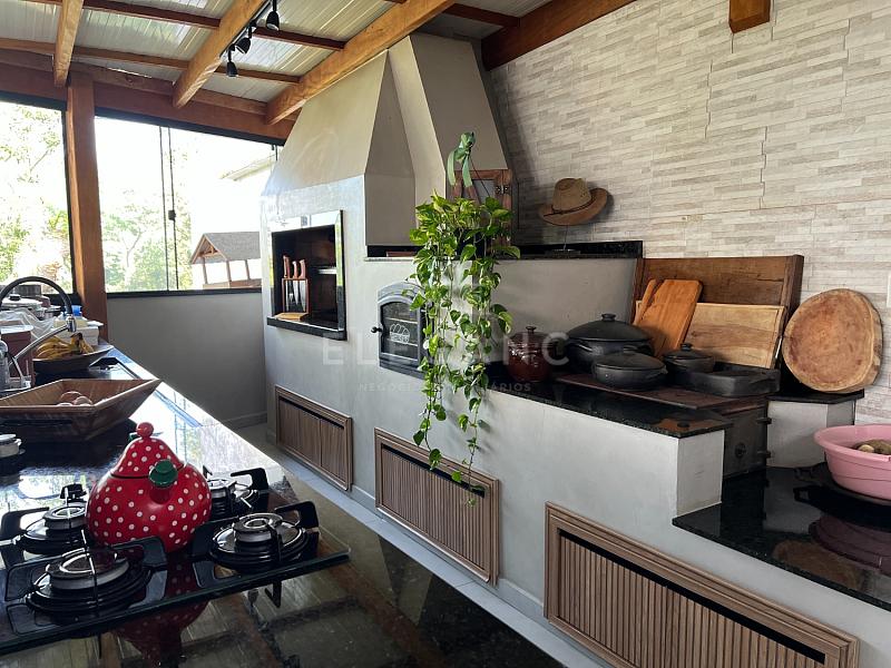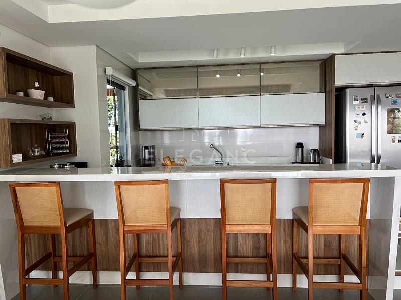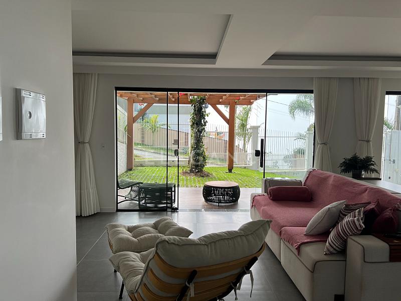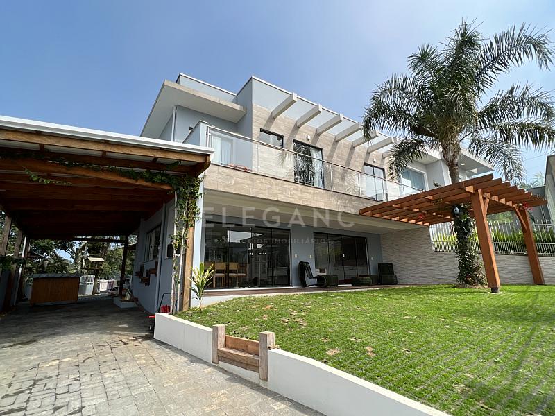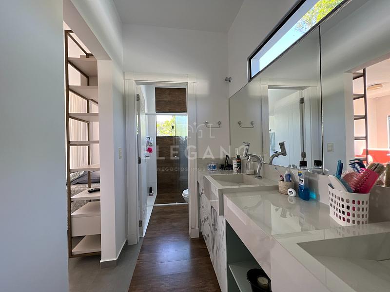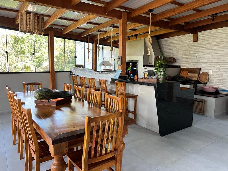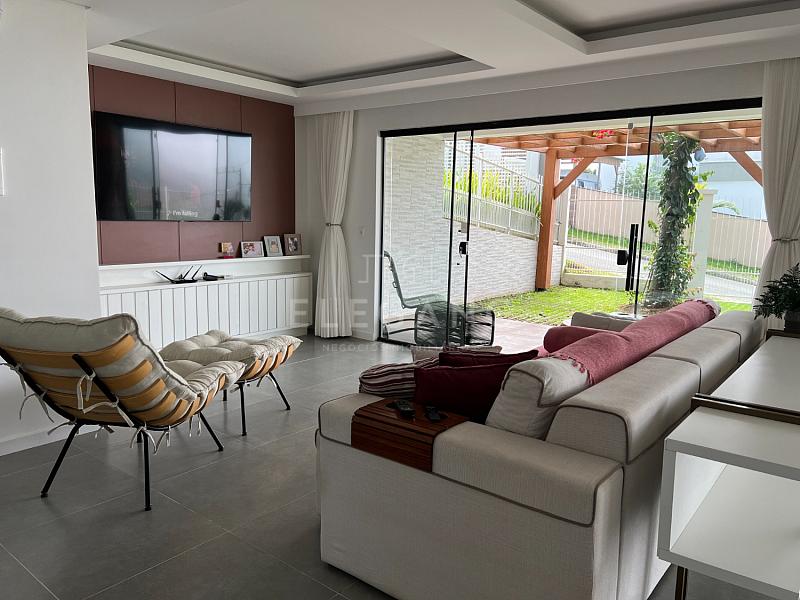 A casa conta com amplo living e cozinha integrada ambas com vista para o mar, living espaçoso com pé direito alto incluindo sala de estar e sala de TV, espaço gourmet com cozinha integrada, lavabo e exclusivas 03 vagas de garagem.