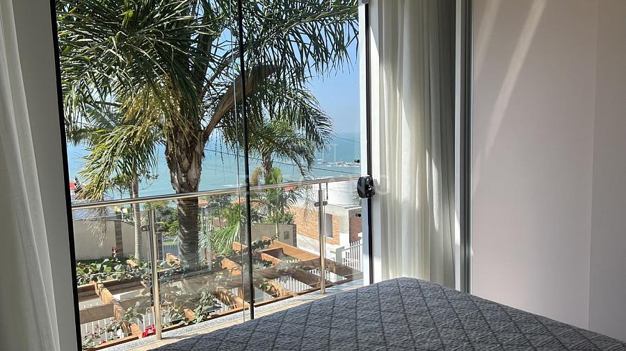 Subindo as escadas, no segundo pavimento, você poderá usufruir de 3 suítes com vista total da praia da Saudade na praia da Penha .