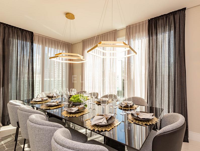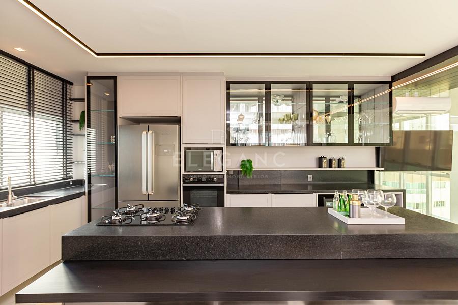 Com generosos 257,74m² de espaço privativo, esta cobertura é um oásis de elegância, totalmente mobiliada e composta por 05 suítes, um espaçoso living, 02 lavabos, uma cozinha gourmet com churrasqueira a carvão, além de uma piscina privativa e um solarium que oferecem vistas espetaculares. A praticidade da área de serviço e as 03 vagas de garagem completam o quadro.