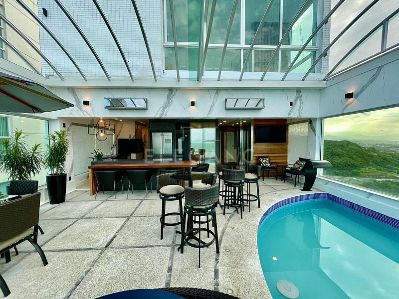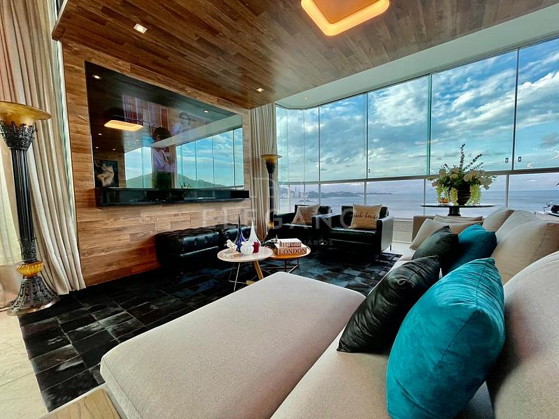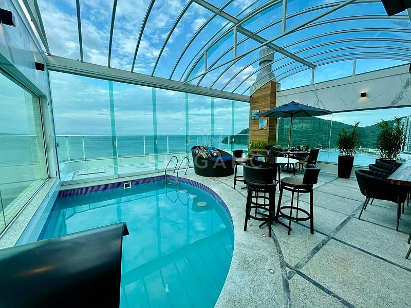 ALTO LUXO -  Cobertura Triplex em Balneário Camboriú de frente pro mar equipada com tudo o que há de melhor em termos de automação e eletrônica. Possui diversas opções de lazer privativas, como uma churrasqueira a carvão ao lado de uma bela piscina, uma academia privativa com vista panorâmica e um home theater de última geração.